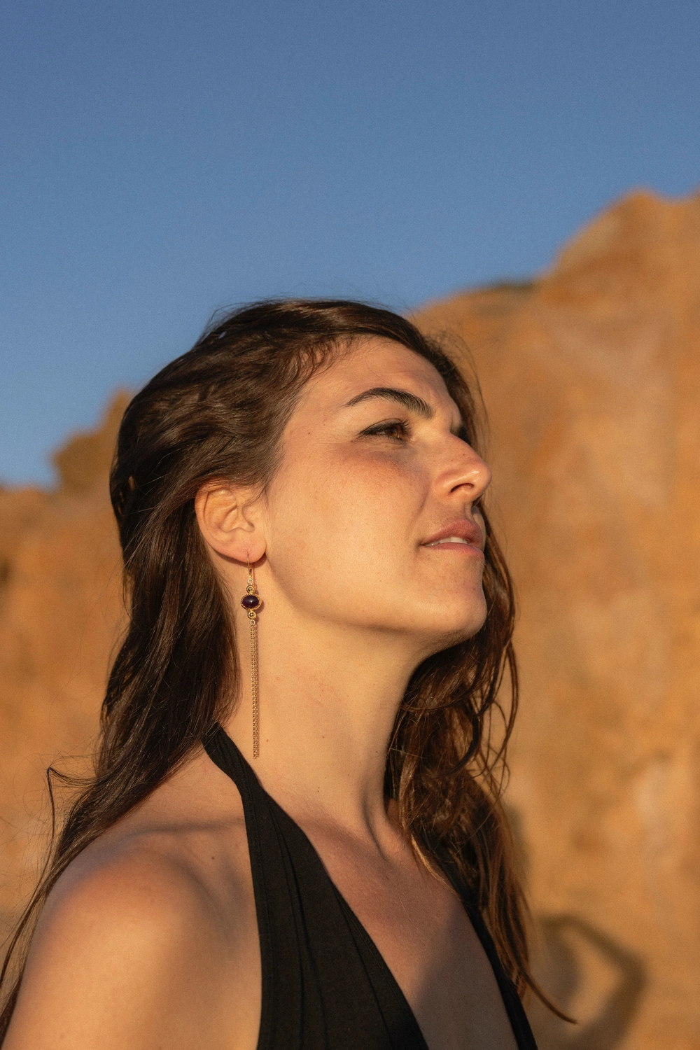 Pendientes hechos a mano en plata, baño de oro de 18kt (3 micras) y cuarzos amatistas.